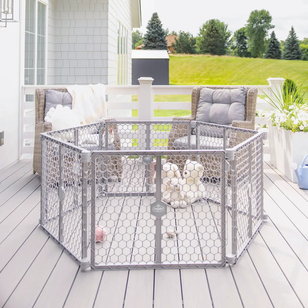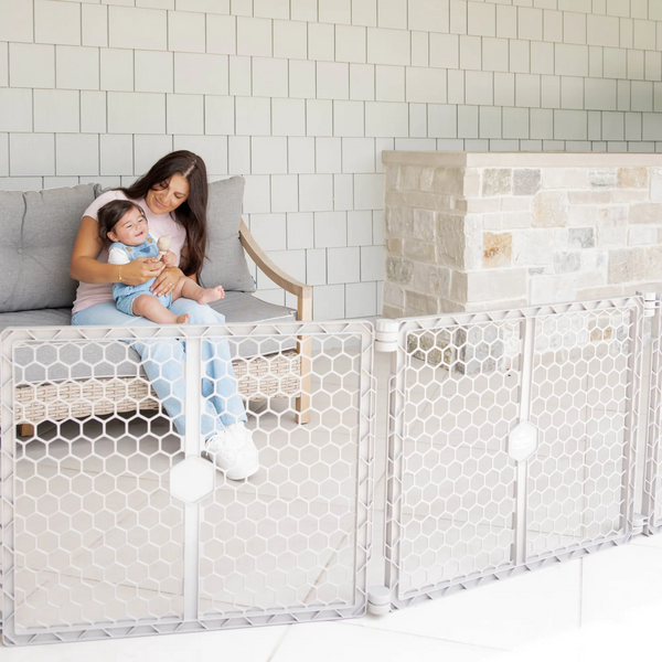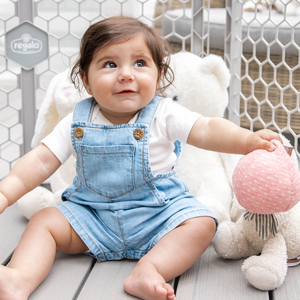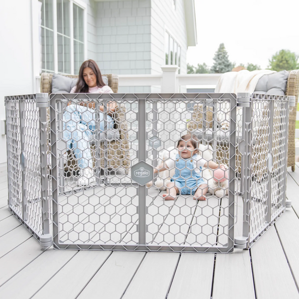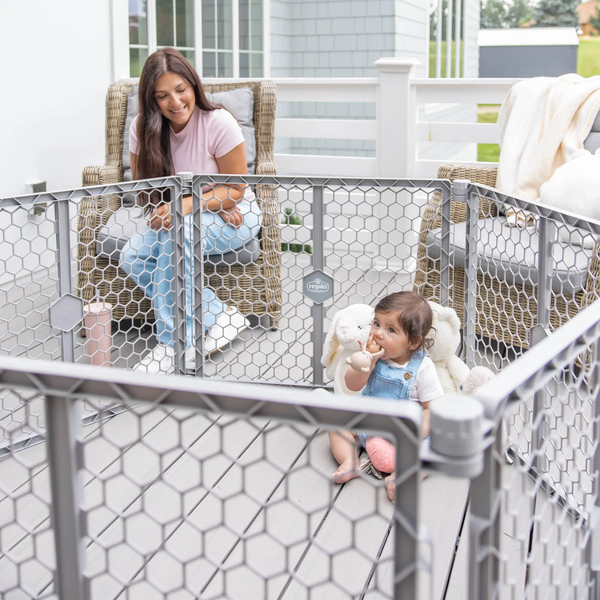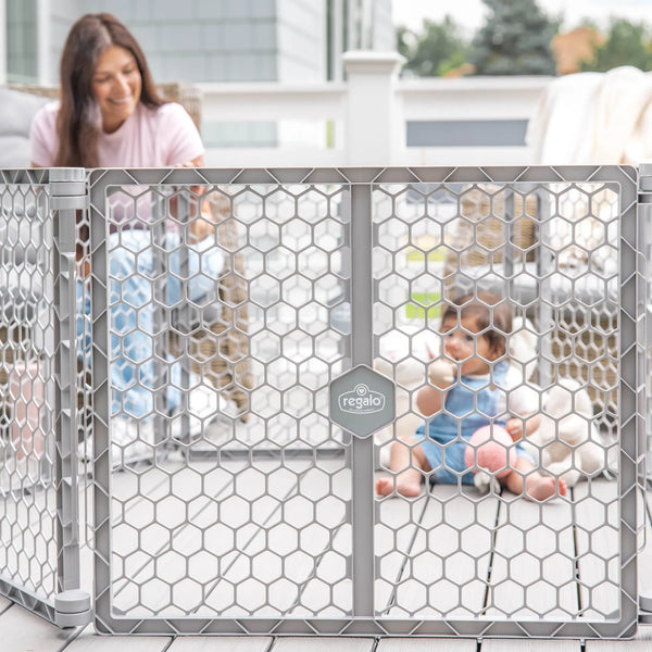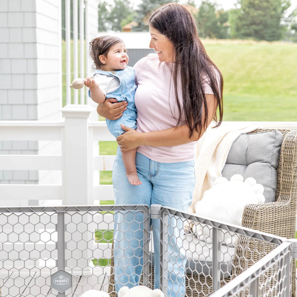 Give yourself peace of mind and your little one a safe space to play, explore, and grow with the Regalo® 2-in-1 Plastic Play Yard and Safety Gate.