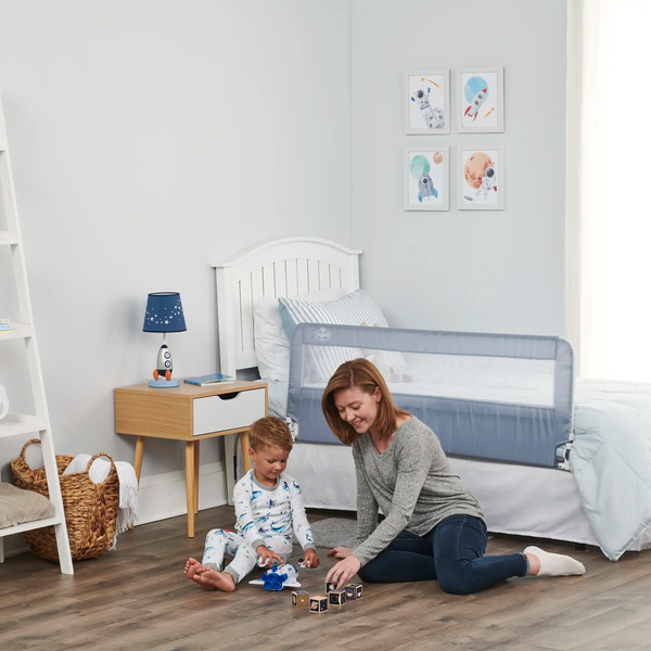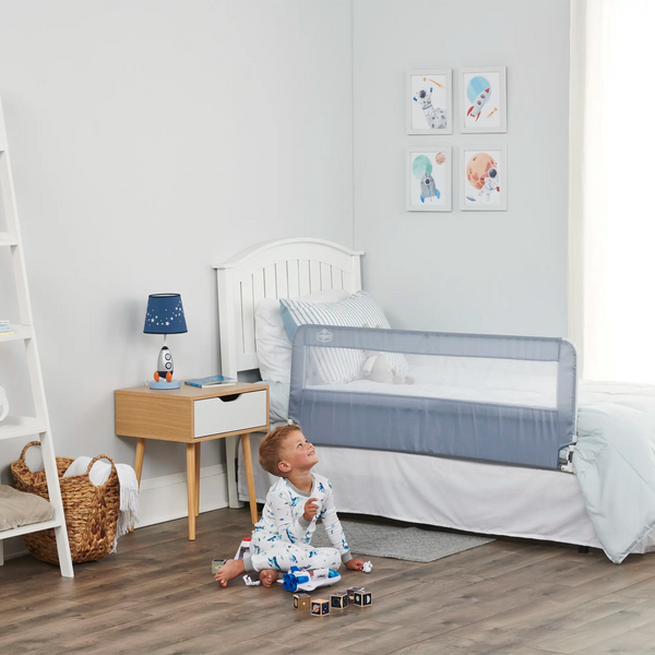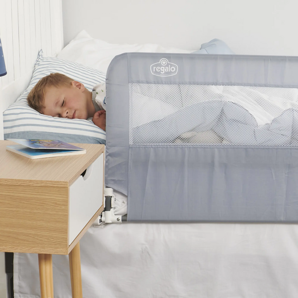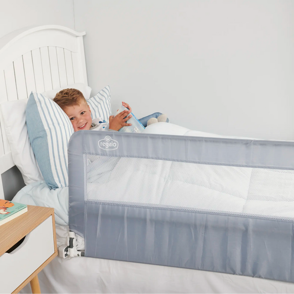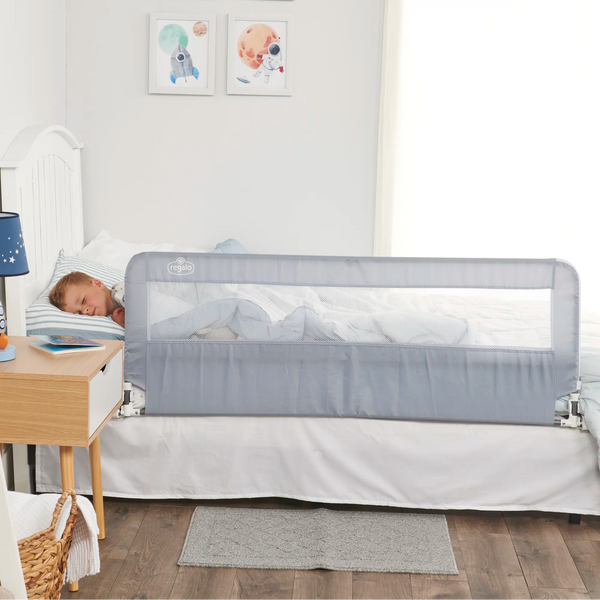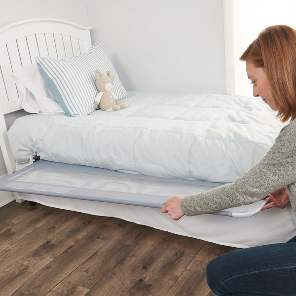 The Regalo HideAway Extra Long Bed Rail is an ideal solution for children who need a little extra protection from rolling out of bed. Our patented Glide Trac System allows the rail to tuck under the mattress and out of your way when not in use.