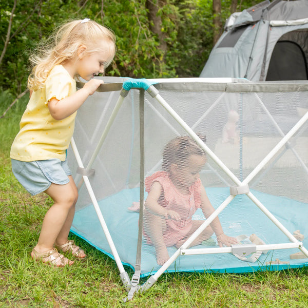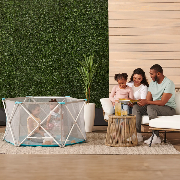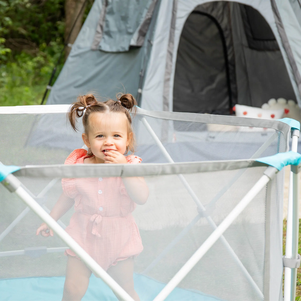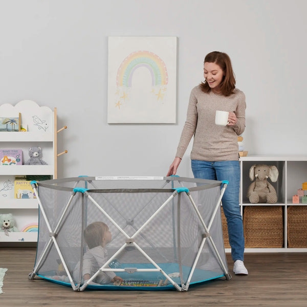 The 6-Panel My Play® Portable Play Yard is lightweight, foldable, play yard is ideal for at home, when traveling, at the park or a day at the beach. Plus, it only takes a minute to set up.