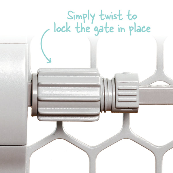 The Regalo® Expandable Plastic Baby Gate is a simple and effective way to protect your baby and home. Made of high-quality plastic, the baby gate is designed to easily step over. It has an easy to use twist and lock system to secure the gate in place. The perfect gate to move from room to room as you need!