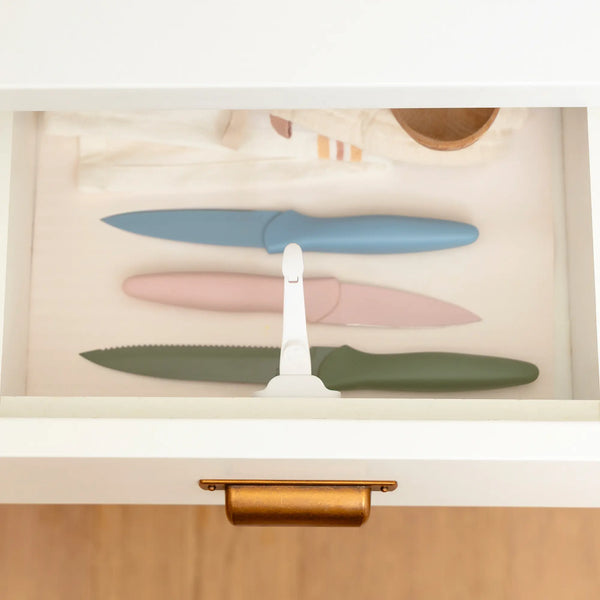 The Regalo® Home Safety Cabinet Drawer Locks keep your little ones from opening your cabinets. These are great for kitchens, bathrooms, offices, and any other room in your home. Our cabinet locks are easy of adults to use while being difficult for children. They install easily inside your cabinet or drawer, to open simply press down on the lever to open. Make baby proofing your home easy with our Home Safety Cabinet Drawer Locks.