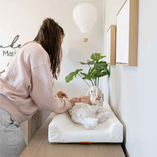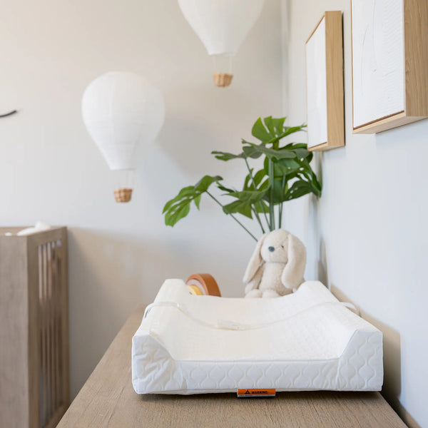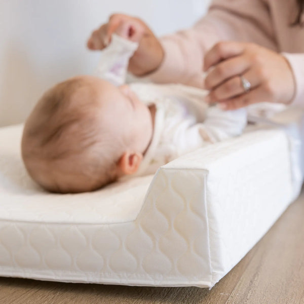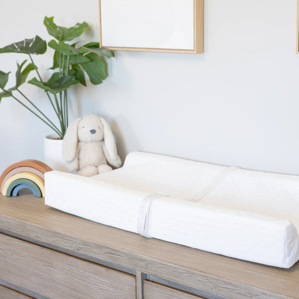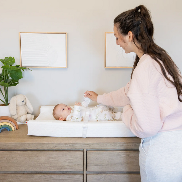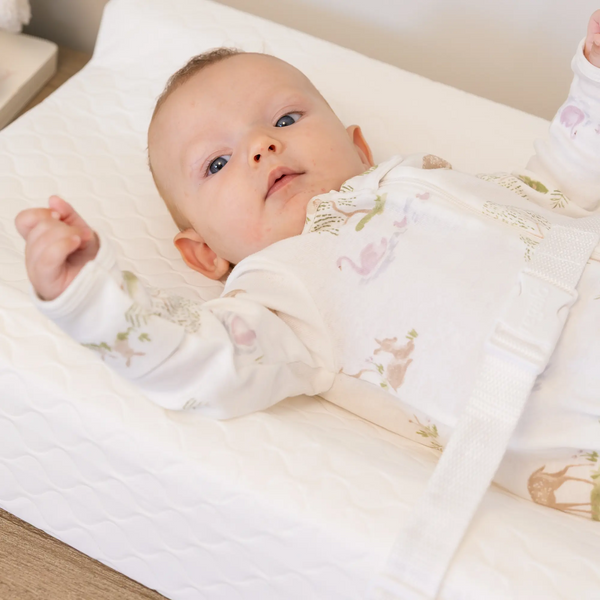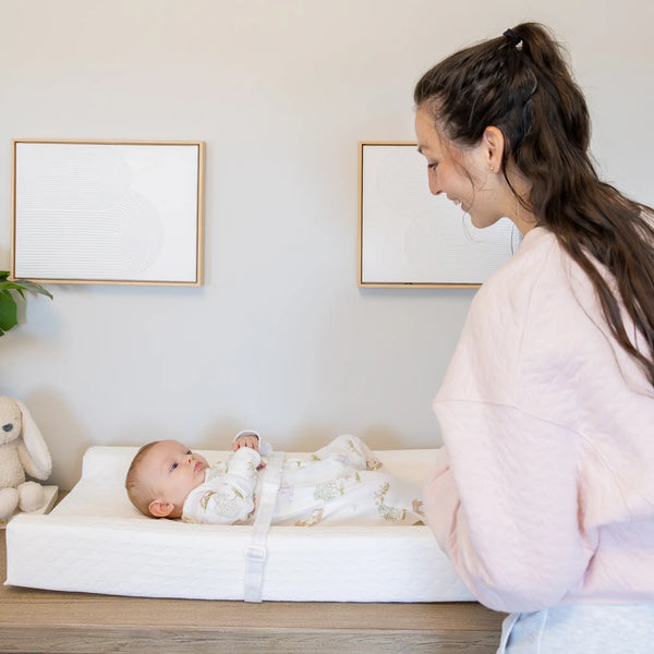 The changing pad was designed with safety and comfort in mind. The 4" high contoured sides will give you peace of mind, while the safety buckle and gripping system will keep the baby safe.