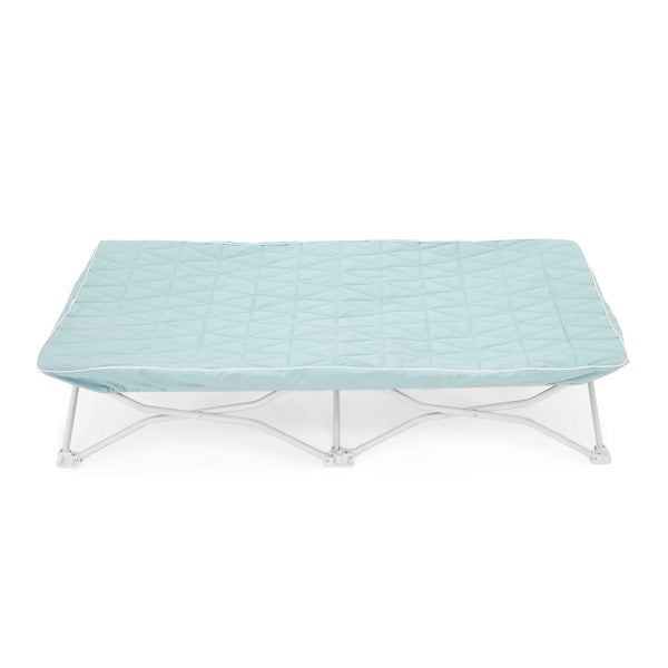 Sturdy canvas lines the cot and an attachable quilted sheet is included to provide extra comfort while your child plays or sleeps. Designed for portability, this toddler bed is great at home or on the go. The Regalo® My Cot® Quilted Portable Toddler Bed is portable, durable, and easy to store.