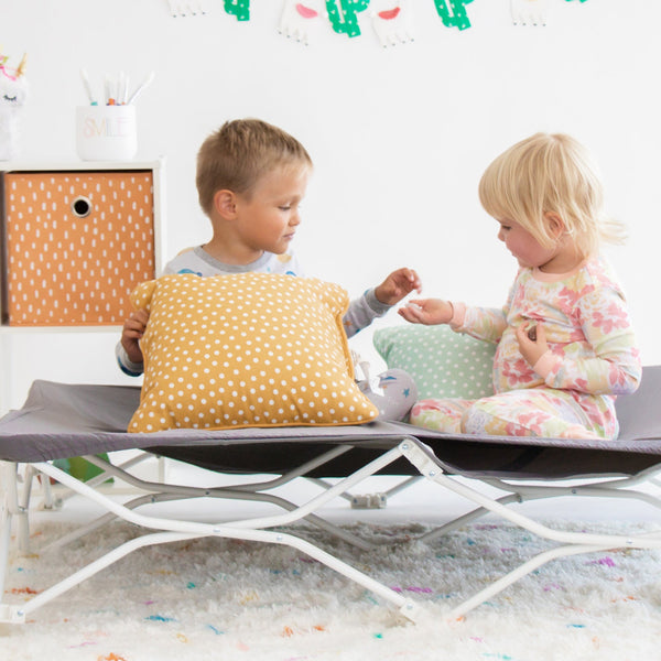 The Regalo® My Cot® Twin Portable Toddler Bed™ is a multi-functional cot for two children that provides a safe, comfortable place to rest.