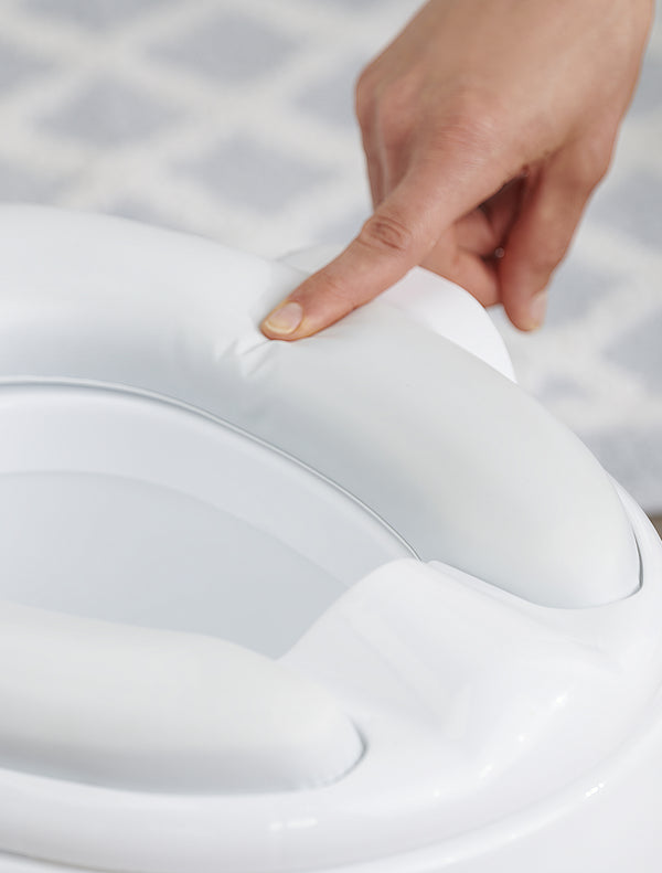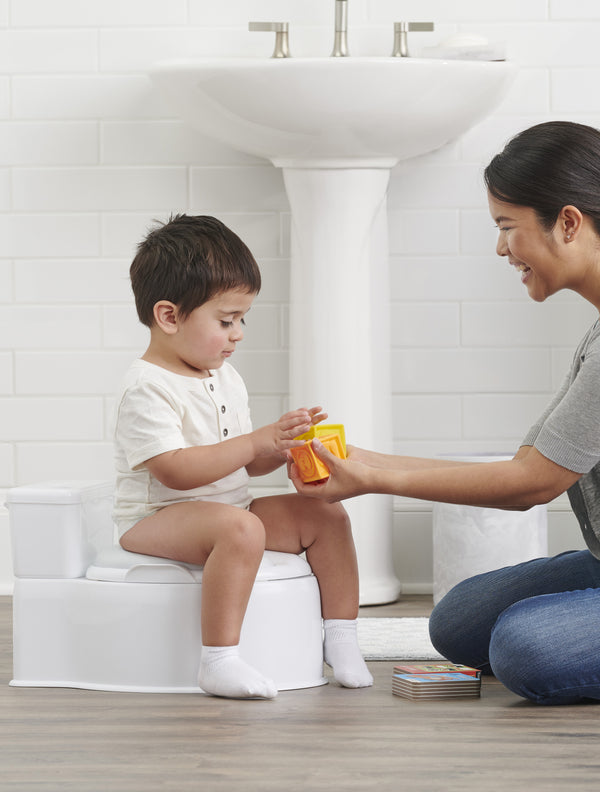 It comes with a removable cozy cushioned seat that fits right to your regular toilet when you’re on the go and as they grow! Positive reinforcement is built right in with the push-button flushing sound that celebrates every successful potty visit.
