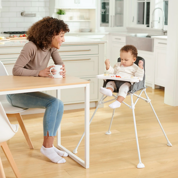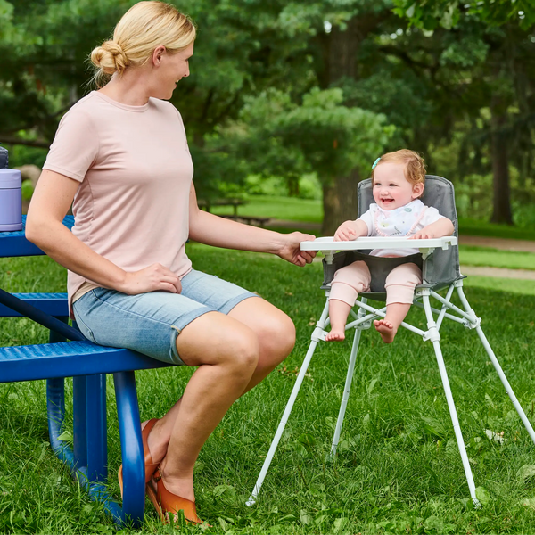 The Regalo® My Portable High Chair™ with Tray is a convenient portable high chair for your little one. This multi-functional high chair, has an attachable tray, folds quickly, and takes up a small footprint. It is the perfect choice when dining on the go, traveling, or visiting friends and family.