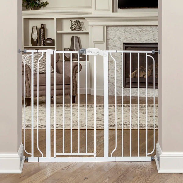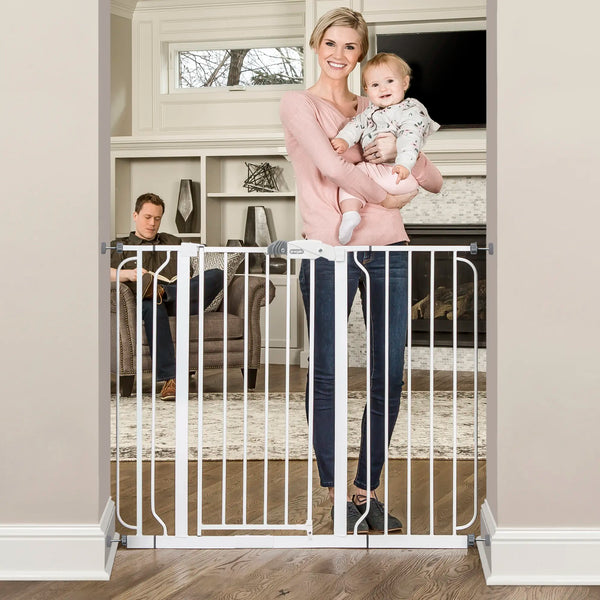 An essential tool for homes with young children, the Regalo® WideSpan® Extra Tall Baby Gate is a safe and convenient way to contain and protect both your child and home. Boasting an all-steel construction this attractive safety gate makes baby proofing easier!