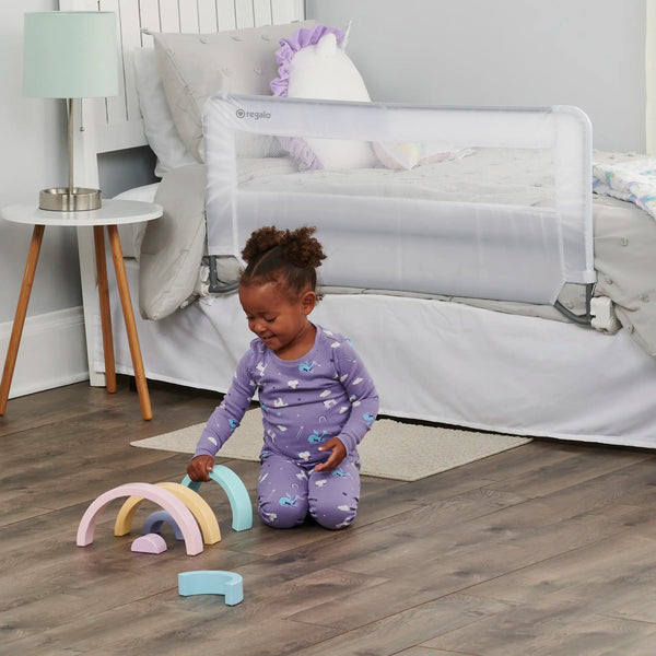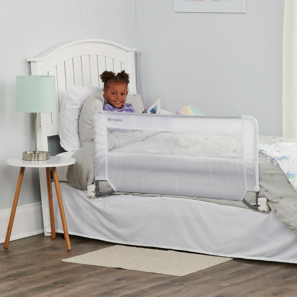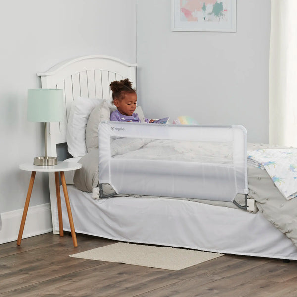 The Regalo® Swing Down Bed Rail is perfect for transitioning your child to their first bed. To make the rails convenient for parents needing to get their kids out of bed, the rail swings down and out of your way, making it simple to access the bed.